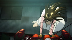 Rideback is one of the more interesting of the winter season anime. Rin Ogata, a college student and former ballet dancer, discovers the college “Rideback” club one rainy day. Ridebacks are a kind of cross between motorcycle and robot. Rin is persuaded to have a go on a red “Fuego” Rideback to pass the time, and discovers that she has a natural affinity for controlling these machines, and that she finds it thrilling.