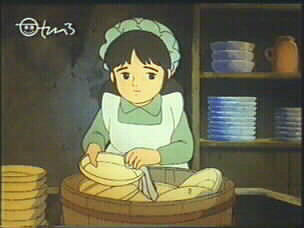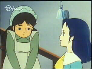 Review | Sara & Lavinia | Sara & Becky | Becky Sara is an orphan working as a servant girl in a big town house used as a school for rich girls, and run by the Headmistress from Hell and her mostly unpleasant servants. I believed it was Japanese as (1) who else could make something this good, and (2) Sara's friend Becky looks at one point extremely like a little girl from "Porco Rosso". Again, it's a period London setting, and not a comedy. Sara's formerly wealthy parents are dead or missing. There's a mysterious Indian (from India) who keeps hopping across the rooftops to help Sara. The story plays the Ill-Treated Orphan card rather a lot, but isolated episodes play beautifully in an atmosphere of magical realism. Well worth checking out. One of the best WMT series, though I found it too depressing for repeat viewings. Taro Rehrl writes: |