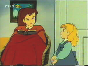 Review | Group | Jo | Amy | Jo & Amy Most fanboys would probably rather die than be seen watching a show with this title. Too bad for them. It's an irresistibly charming adaptation of the famous American novel. The character designs have something in common with those for WHISPER OF THE HEART, and the characters of Jo and Amy are so well brought to life that one rapidly gains a vivid impression of them. A few minutes and I was hooked. Recommended as a cure for depression! My mother says that in the book the March household was poverty-stricken; they don't look so poor in this anime. Except that in the bits I've seen they always wear the same clothes. This is evidently another of those WMT anime. The first fifteen or so episodes are a prequel originated by the Japanese using material culled from the book, and insert some dramatic American Civil War material which is conspicuously absent from the original. You can download the original novel. (having done so, it seems that where it meshes with the animation, many scenes are faithfully adapted. The structure of the series departs widely from the first book in that the first episodes are additions and the latter chapters are not animated. The book starts about ep#17 of the TV, and the TV ends at the end of Part 1 of the book (ch.23)). The un-adapted Part 2 of the novel, (often published as a separate volume) significantly depicts the sisters as adults. |