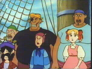 Review | Wendy & Pirates | Wendy, John & Michael | Peter, John & Michael | Wendy & Lost Boy In contrast to the other WMT anime, this is a very free adaptation of J.M.Barrie's classic. However it's colourful and a lot of fun, with comically nasty pirates and a playful Peter and adventurous Lost Boys. As one would expect of a Japanese adaptation, the girls, ie Wendy, Tiger Lily, and Luna (the latter not in the book) are all strong, sensible characters, with Wendy cast firmly in the role of Little Mother. |