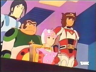 Review | An old anime featuring space adventure of a rather simplistic sort. Younger viewers might like it. For anyone else it is a curiousity. In the episode I saw, the main characters discover another spacecraft whose two occupants,a man and a woman, are in suspended animation. Rather unwillingly, they disclose that they have fled from a planet where the inhabitants are terrorised by a giant sea- monster. To cut the story short, they fled because the girl was being offered as a sacrifice to the sea- monster. One of the main characters (Princess Aurora) takes her place, and the team defeats the monster, which turns out to be artificial and gives their combat aircraft a good seeing to. However a ray from Aurora's hairpiece deflates it, and it turns into a small sea-creature, too small to be worth the trouble of squashing underfoot. |