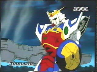 | Review | Starts out being quite entertaining, as the Gundams kick ass, destroying everything in their way while not even getting their paint scratched. Lots of exciting action in the first few episodes. However I gave up in exasperation after 10 episodes of the Cartoon Network English version, tired of the endless moralising and unconvincing scenarios, and crypto-fascist worship of military force. The clincher was the scene where Ralina leans out of the door of a jet aircraft in flight, clutching a piece of paper and yelling at two mobile suit pilots to stop having an unnecesary honor duel. |