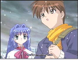 Synopsis | Teenaged Yuichi returns to a town where he lived seven years before. He goes to stay with a family (including his cousin Nayuki) that he knew as a child, and runs into two girls who he also knew seven years before. |