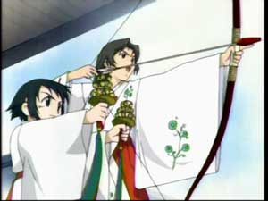 Japanese schoolgirls form a society of Mikos (temple maidens) dedicated to fighting evil, and appear in school dressed in priestess robes. Episodes 3&4 (short) are dedicated mainly to a recruitment drive. |