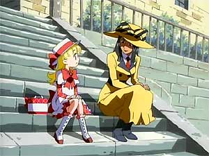 We have a perky 12 year old orphan heroine, a pair of bad guys straight out of a Disney film, not one but two cute little mini-lions, a mysterious gem, a more mysterious older love interest for the heroine and a lost mother. What more could you want in a film for kids? The heroine even gets to run off with traveling entertainers, a la "Pinocchio". Sure, I realize that there is always a new generation of grade school kids who haven't seen this type of story, but I'm still surprised that the creators of the show didn't try to avoid some of the clichés of the genre.
