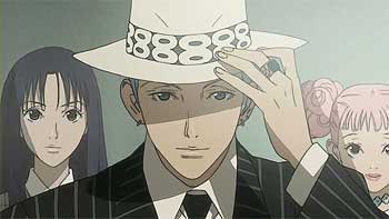 Review | Seems to be generating some buzz before it's even appeared on-air. Note that anime that have principal characters of college age are very rare. The only others that come to mind are "Gokinjo Monogatari " and "Honey and Clover". (GC) "Paradise Kiss" is an interesting experiment - a shoujo romance done in a comic post-modern manner. The opening episode is deliberately fragmentary and almost feels like an homage to the style of the "hip" films of the late 60s and early 70s. The ending animation in particular looks much more like animated openings or closings from American romantic comedies of that era than it does anime. But underlying the barrage of cinematic style is a fairly traditional shoujo romance that anchors the visuals and is itself anchored by the narration of the protagonist Yukari, aka, "Caroline". The plot is pure shoujo fantasy - Yukari, who is a studious girl in the third year of high school and who is getting ready to go to university, is selected "off the street" to be the spokesmodel for a group of young fashion designers lead by George, a rich-kid third year design school student. Yukari is initially uninterested in the opportunity but is charmed by George and fascinated by her own transformation so she agrees to join the motley but enthusiastic members of "Paradise Kiss". All-in-all, the opening episode was well done and fun to watch. It appears that the series will be quite short, so we shouldn't see a lot of filler. What does surprise me is that the show is in a late night broadcast slot - the plot and what goes on in the first episode could easily be shown in an early shoujo time slot.