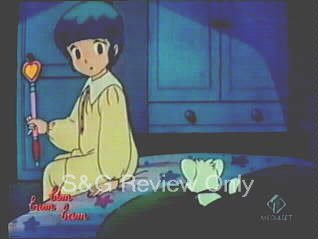 Review | If you think the above summary sounds very odd, you're probably right, though equally bizarre things happen in many magical-girl anime. It's an amusing series, likeable but not really exceptional. "Creamy" is rather insipid-looking, though she can be stubborn. I preferred the looks of her singing rival, a real woman (!) who is rather a bitch, though we can sympathise with her a bit for being upstaged by a younger rival. There is quite a lot of mildly sexual innuendo. Yuu is only of elementary school age but there are many glimpses of her underpants and she has two admirers who are teenage boys. One, the handsome one, is really a fan of Creamy, while the other, a great lump of a boy, is in love with young Yuu and in the early episodes keeps trying to give her flowers. Non-native English speakers should be aware that even the title could be taken as having indecent meanings. Tut tut. There are several points of similarity with the magical-girl series (and OVA) Magical Stage Fancy Lala, but it has to be said that the Fancy Lala TV series, made 15 years later than Creamy Mami, is much more sophisticated in its treatment. |