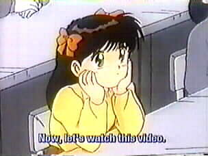 series I rated above this. However, after four episodes its gentle charm becomes hard to resist. Yuko, with her maine of glossy black hair and bright hair ribbon, is a cute little girl. And the episodes shown do have some gritty insights into the ubiquitous after-school clubs. The duo enrol for music club, only to find that they have to bash a wooden block with iron rods for hours, week after week. When one starts skipping class, the senior girls are furious, and pick on the duo for having non-regulation hairstyle and scarf knotting, and they are "sorted out" by having their hair forcibly restyled (plaited)! The club incident also reminds me of the Kimagure Orange Road school tennis club - Kyouske & co. have to sit and watch the seniors hitting balls to and fro. |