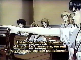 Review | St MICHAEL'S ACADEMY (fan subtitled by Arctic Animation) Not just another Japanese girls' school story in which things go a little too far; this quickly distinguishes itself with with an intelligent and articulate script. In particular, it captures brilliantly the spirit of adolescent rebellion against authority and dullness. However, the ending of the second volume is rather weak. The school, a hotbed of sexually charged repression, purports to prepare girls for the Takarazuka stage company. However its real purpose is much more strange and sinister. This is one of the most daring pieces of anime I have seen, and may well leave unwary viewers with their jaws hanging open. Not for the usual reasons, though there is plenty ov violence and a certain amount of sexuality, so much as for the sheer surprise engendered by many scenes, and also for what it attacks. Japan is not a Christian country and the eye this turns on the Christian religion is not a sympathetic one. First time viewers may well watch much of the video in a state of this-can't-be-happening disbelief! It helps to be well read enough to appreciate what is being attacked here. To give you some idea of the tone, one of the less shocking bits is the lesbian scene where one of the most fanatical of the Girl Crusaders is seduced. I shall not reveal more, save that this one makes JESUS OF MONTREAL look like THE TEN COMMANDMENTS. Decidedly not recommended for children, or for devout Christians. |