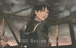 "Blood" is not you "usual" anime feature film. First of all, there are two subtitle tracks on the DVD ( SME Visual Works #SVWB 5005 ), Japanese and English. What's unusual with that you ask? Well, the dialog in the film is at least 2/3rds in English, if not 3/4ths. The English dialog is done for the most part by native English speaking actors ( the Screen Actors Guild is in the credits at the end ), but it sounds a little "odd". That is because the English dialog is done very clearly, with relatively slow pacing and definite enunciation. That of course, is because it was for the benefit of the Japanese audience. But this in no way detracts from the overall appeal of the film, because this is not a dialog intensive film - it's the action and visuals that make it so intense. The film is set in 1966, at a US Air Force base in Japan, where Saya, a very strange girl ( big understatement! ), is investigating some nasty murders, with the help of some MIB's. Well, "investigating" isn't a really good description, because Saya's "methods" are not quite what you expect, but are certainly "direct and final". The movie starts out with intense suspense, leading into immediate violent action, leading into more suspense, followed by even more violent action, and so on. There isn't a wasted second in this film. The visuals in the film bring a chilling frightfulness which sets the entire mood. The 3DCG is so well done that there are plenty of places where it is hard to figure out if it is really CG or film adapted to look like CG. The character designs are from the "horrific realism" school of animation, a la "Perfect Blue" or "Lain". BTW - the film is in 16:9 ratio, so it looks tremendous on a high definition screen. Those of you who saw the teasers for the film last year, or over the past couple of months while the video release was being pumped, will have a tiny idea of what to expect, as did I going into "Blood". But this is definitely not one of those films where the "trailer tells all". The ads for the movie didn't even come close to capturing the nearly indescribable experience that the film brings. In any event, this is enough raving for now. Go get and see "Blood the Last Vampire". There is the "plain" region 2 DVD version like I bought, and a more expensive boxed set that has additional materials. (Dave Baranyi) I saw this premiered on British TV, with the Japanese dialogue (subtitled) and the original English dialogue. It's a very unusual and powerful anime, and I have little to add to Dave's review, except that one just wishes the video were longer... The notion of vampire-despatching is scarcely new in anime, and this variation reminds me of the "Vampire Princess Miyu" scenario, but it's much grimmer. There'a a strange scene at the end, where Saya lets her blood drip onto a dying monster. Why? |