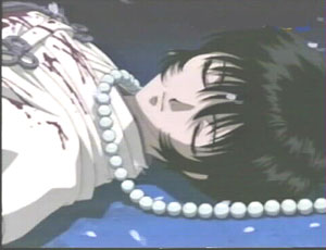 Well, it turns out that what I read wasn't quite right. Instead of being a prologue to the TV series, the OAV is essentially a preview of the first half of the TV series, tied together by a narrative told by Kakyo Kuduki. We see a series of short scenes from a number of episodes, but nothing independent really happens. We do find out "how" Kakyo got to the limbo in which we see him in the middle episodes of the TV series, but not really why ( that is, the background on how he fits into the overall story ). This leaves an interesting conundrum - who should and shouldn't watch the OAV? If you are already watching the TV series like me, the OAV doesn't really add anything to it. On the other hand, if you watch the OAV before watching the TV series you will see a number of major spoilers. I guess that the OAV is really only for those folks who are trying to collect "everything" concerning "X". That's not to say that the OAV isn't nice to look at - the animation quality is very good. And the music is nice too, although they don't use the wonderful ending theme, "Secret Sorrow" from the TV series. ( I also received the full length version of "Secret Sorrow" in yesterday's package - Victor Entertainment, VICL-35328. The full version is about 4 1/2 minutes long. ) There is also a "making of" video after the end of the OAV. But in the end the "X" OAV wasn't what I had hoped it might be. (Dave Baranyi) |