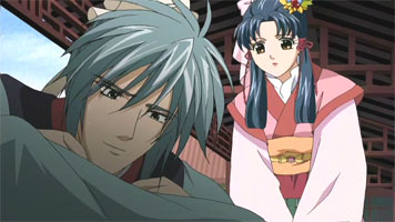 Review | Superficially, Saiunkoku looks startlingly like a 12 Kingdoms side-story, with similar buildings, similar costumes, and even similar-sounding province names. However it's rather lighter in tone, with romance and comedy as well as political intrigue. Saiunkoku is based on 12 light novels by Sai Yukino. I have only seen a couple of episodes of series 2, but it looks like an interesting anime. The first series is being released in the US on DVD. |