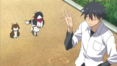 Synopsis | Story about a boy, Junpei, who hates cats and is allergic to them, and is cursed after damaging a roadside cat shrine, with the result that he can understand what cats say, and has to fulfill 100 cat wishes otherwise he will turn into a cat. At the start of the story he secretly is attracted to his pretty classmate Kaede. However as the series progresses one gets to feel that there is a harem thing going on, as while he may be cursed by the cats, he is also attracting a following of good-looking girls. |