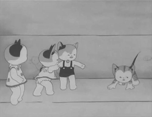 Synopsis | Plot Summary: A Mother and her Kittens were taking a walk when they came upo a hungry Tora-Chan. Giving the kittens their lunch which consisted of milk, she took the remainder of the milk and feed Tora-Chan. The Mother kitten brings home Tora with her family and all seem to get along with him, except for the youngest cat daughter. When the youngest cat runs away, Tora-chan looks for her. |