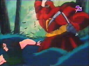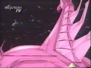 "Iskander", whatever that is. Justin Burrell writes: "Iskander", I believe, may in fact be "Icelander" A good guy who defected to the "dark side", and joined with the evil Emperor against the Andromedans. He is the pilot of the "Mantis", the deadly green robot a rival for Cybertron which Joe pilots. And for added info, both Joe and Icelander love Princess Romena, which may account for most of the hostilities. As for its watchability, it looks like there is plenty of plot and it could be very watchable if properly translated. Certainly no worse than Macross or Brain Powerd.(GC) Bird spacecraft | Red robots (in case the sharp-eyed are wondering, it was on two different TV channels.) |