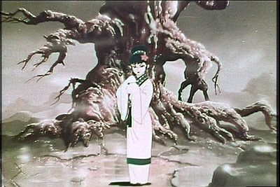 Chinese folktale, Pai-She Chuan (White Snake). Only two Japanese voice actors were used, providing the voices for all the different parts. Though now over 50 years old, this is quite an enjoyable film and its Chinese setting is quite well realised. It's interesting to see such an early Japanese movie. A beautiful and important film. I obtained the low-priced USA dub "Panda and the Magic Serpent". Production values are rather crude on the DVD, but it apparently preserves the original sound-track of the songs. |