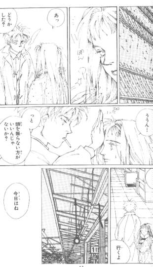 This is a shoujo-manga intended, presumably, for women or older girls and has a charming story about a schoolgirl who runs away from home, buys a picture "E" for Y30,000 (about $300 or £200), falls off a train platform, bangs her head, and is rescued by a scruffy stranger. After a psychiatric investigation she is returned home to her over=protective mother but still hopes to see her new boyfriend. Some of the professionals Senju meets do seem, well, eccentric... Synopsis of vol.1. The art is most attractive and the text, for those who can follow it, has some insights on the Kyoto art scene. (GC). |