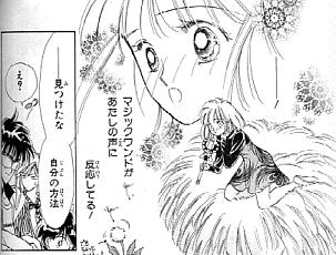Text: Magic - it reacted to my voice. Note by flower: But Ryoko is wrong Inset: But find out the method. Eh? (Tr. by GC.) Get original scan (higher resolution, 93K) |