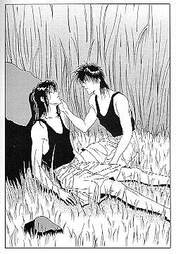 Boys Together Dialogue, from top left, previous page: Previous Page :I can't see you! Speak up! Following Page:Very similar face. Aren't we twins? Again my body is powerless. (Tr. by G.C.) |